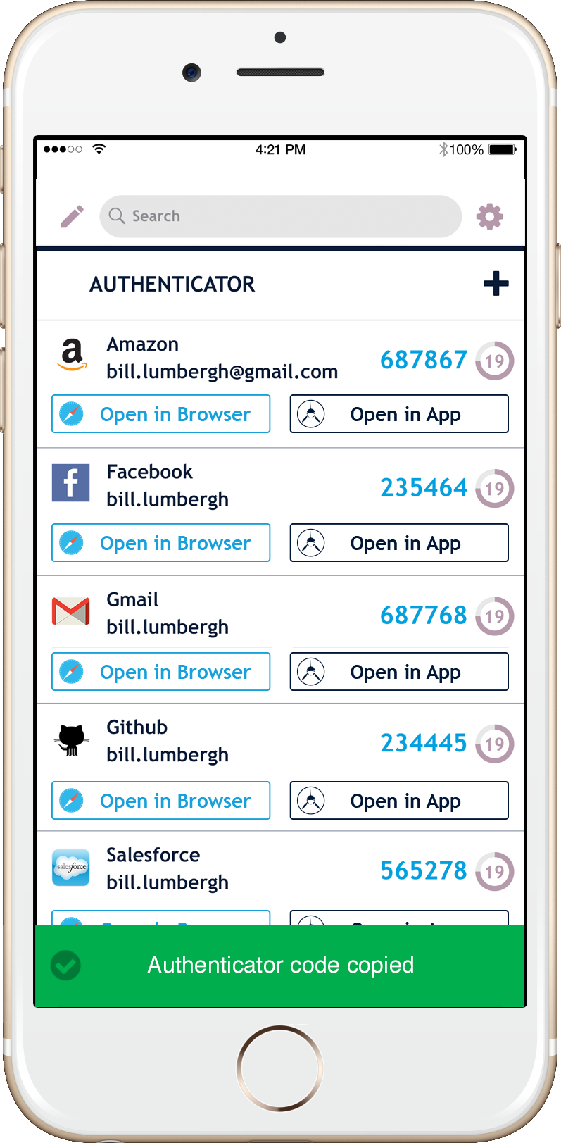 SAASPASSAuthenticator can be supported on multiple devices including tablets like the iPad. You can have all your Authenticators on two or more devices. You can also control your multiple devices with device management. The ability to do a remote wipe is very handy especially if you have it on more than two devices. You can remotely remove your SAASPASS from a discarded or even (heaven forbid) a stolen device. Access to your SAASPASS is always protected by biometrics like Touch ID or your customizable PIN.