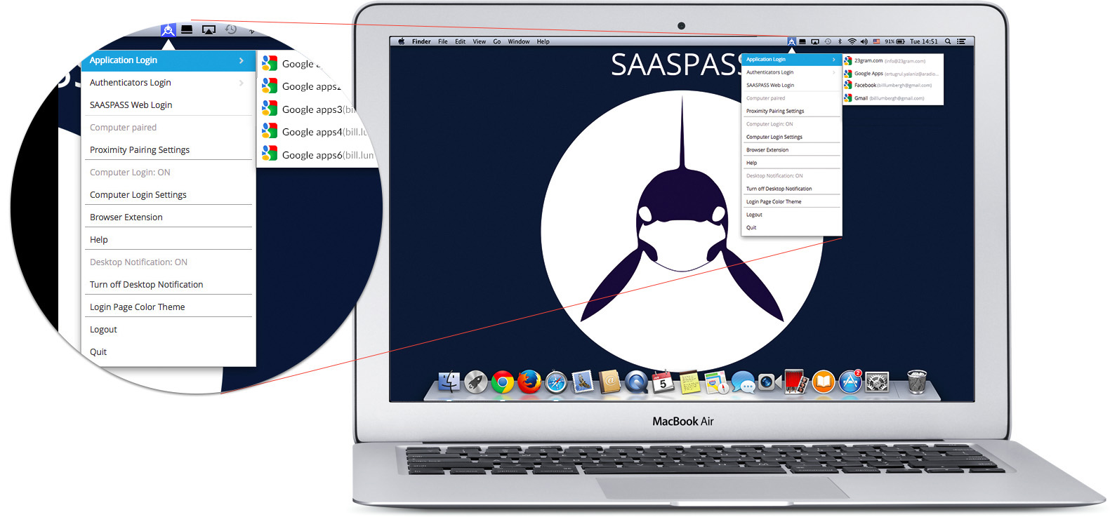 You can secure access to on-premise assets including Windows computers, VPNs, hybrid cloud apps and cloud applications like Google Apps, Office 365, Zendesk, Freshdesk, Zoho and Salesforce. Your employees can use passwordless secure instant access to all their company applications including emails. Just add your company specific email as an admin and instantly register or log in to your SAASPASS admin portal. You're done now!